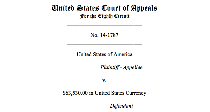 The Eighth Circuit Court of Appeals has failed to uphold one of the most basic principles of the American legal system by allowing the forfeiture of more than $63,000 of cash to the government. The decision could have serious ramifications for innocent property owners in the Midwest.