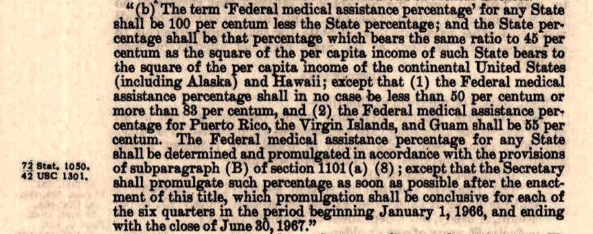 Intended to function as a state and federally funded program to provide low-income Americans with health insurance, it is by all counts a welfare program -- a government program to provide support to low-income Americans. However, throughout time, it does not even function as so. This is due in no small part to the backwards incentive structure created by the calculations and statutory requirements of the federal medical assistance percentage (FMAP).